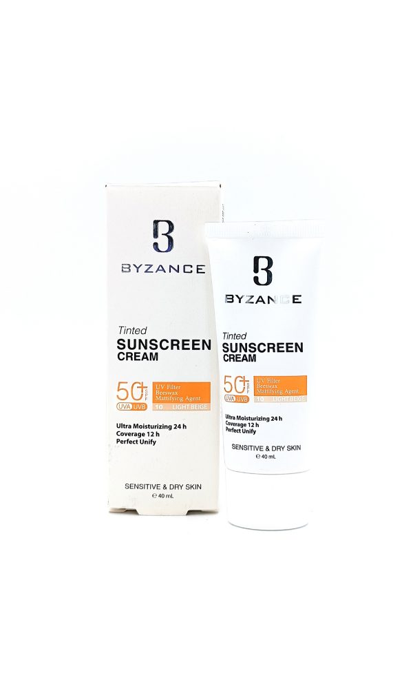 کرم ضد آفتاب رنگی SPF50 پوست خشک(بژ روشن (10))بیزانس موجود در سایت سلامتی استور. مشخصات کرم ضد آفتاب رنگی SPF50